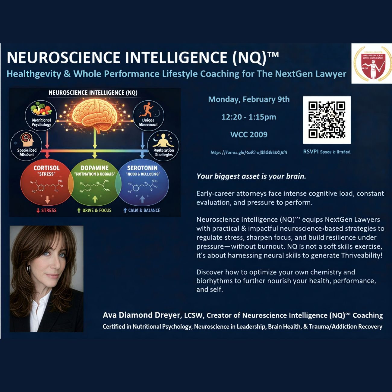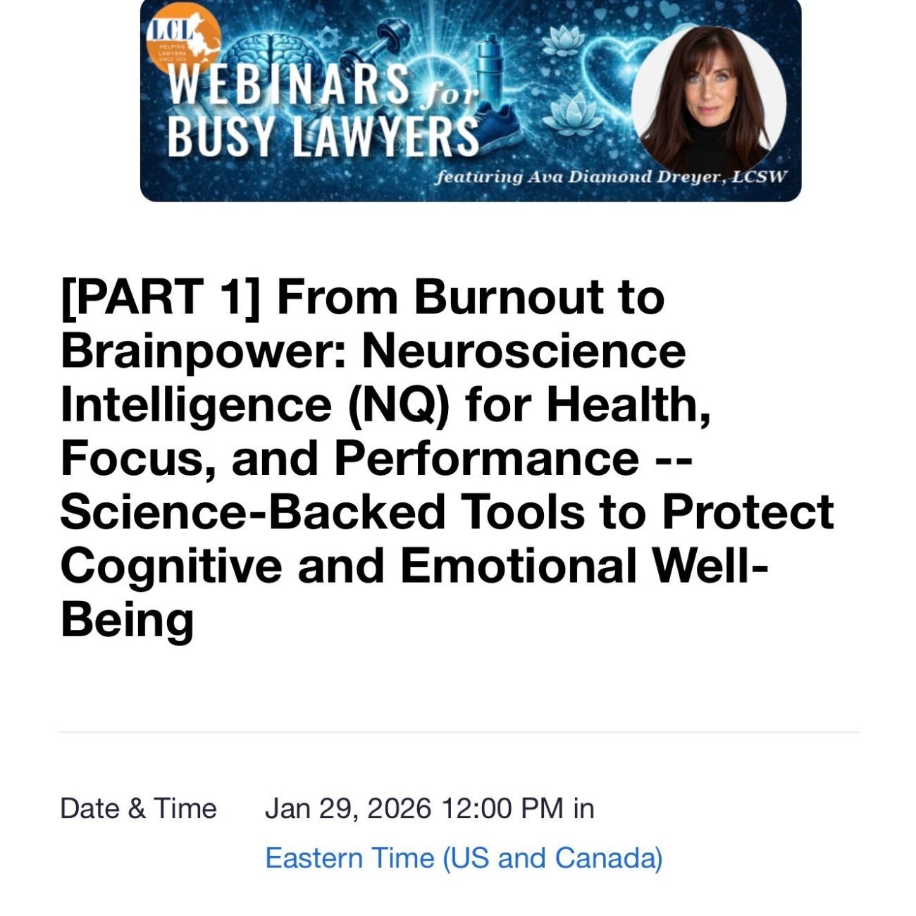 Brain Bootcamp, as part of The Optimized Lawyer, was one of the best wellness programs I’ve ever attended. Spanning four 45-minute sessions, the program provided clear, practical, and actionable advice to support brain health and a healthier lifestyle in general. Ava was engaging and skillful in breaking the topics into digestible and useful takeaways. The Bootcamp struck the perfect balance between being thorough yet concise, making it both accessible and impactful. I highly recommend this program to anyone looking to enhance their overall well-being.